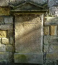 Hugh Nevin died in September 1677. Agnes Dick had been his spouse. A will, dated at Over Kirkwood, 28 August 1677, states the said umquhile Hew Nevin of Kirkwood, he ordains that his body be buried in the churchyard of Kilwinning in his father’s burial place of Kilwinning. A Nevin gravestone at the abbey was still visible in the early 20th century.[2]