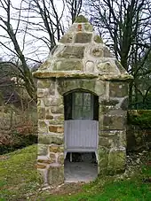 The 1775 map shows a mansion house with substantial woodland policies,[13] as does Thomson's map of 1820.[14] In the 1920s a large beech tree fell at Monkredding and was found to be around 400 years old. Several large beeches still stand on the roadside opposite the old entrance, part of the old policies before the new road was built.[2]