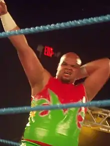 On June 3, 2008, after Byron Saxton cut a promo for Torres, he later became Torres' manager.[6] Black Pain was managed by Saxton regularly, accompanying him for matches, and also teaming occasionally with him.[7][8] He became part of The Saxton Conglomerate, a faction composed of Tarver, Black Pain, Stu Sanders and led by Byron Saxton. Black Pain had his first match with the Conglomerate on October 30, where he teamed with Michael Tarver and Stu Sanders in a losing effort against Johnny Prime, Kafu and Sinn Bowdee.[9] In January 2009, Black Pain broke away from the Conglomerate, and changed his ring name to Sweet Papi Sanchez, prompting a feud with the remaining Conglomerate members.[10][11][12]