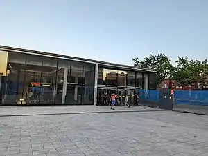 In October 2018, work began to install two elevators, add two staircases connecting the platforms to the street and build a second walkway above the tracks linking the two platforms. The work also involved construction of a replacement entrance building, with a glass façade and new artwork. A walkway provides access between the two elevators, and the fare booth and ticket machines have been relocated to the street level.[2]