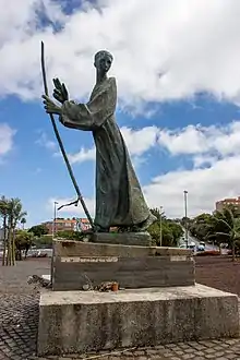 The monumental sculpture is dedicated to Joseph of Anchieta, who was born in La Laguna in 1534, before going to Brazil as a missionary in 1553.[1] The bronze sculpture is approximately 5 metres (16 ft) tall, and is on a 1 metre (3.3 ft) concrete pedestal.[1] The statue's position is described as "walking towards the sea and looking at La Laguna".[2] It is one of La Laguna's emblematic symbols.[3]