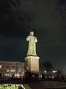 The Monument to Nizami Ganjavi, a medieval Persian poet, is located in Tashkent, the capital of Uzbekistan, in a square near the Tashkent State Pedagogic University named after Nizami, near a park named after Babur. Ilham Jabbarov is the sculptor of the monument.