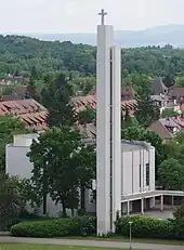 Mooswald is a district in the western part of Freiburg im Breisgau, Germany, which consists of the two districts Mooswald West (521) and Mooswald East (522). Its population is 9,223 (2020).[1] In the North East, Mooswald borders the district of Brühl, with its airfield, the university campus of the technical faculty and the exhibition centre. Mooswald further borders the district of Landwasser in the North West, the district of Stühlinger in the East and the district of Betzenhausen with the Seepark in the South West. Mooswald is separated from Brühl by the Breisgau S-Bahn, from Landwasser by the Westrandstraße (Paduaallee/Mooswaldallee) and from Stühlinger by the railway tracks of the freight railway.