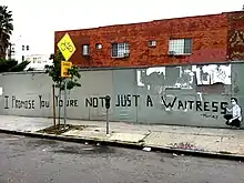 Morley (born 1982) is a street artist based in Los Angeles, California. He specializes in wheatpaste prints that feature bold text and an image of the artist drawing the words with a Sharpie marker. Morley has indicated that he studied at The School of Visual Arts in New York.[1] In 2011 his work caught the eye of former Banksy manager Steve Lazarides, whose Outsiders division began selling screen prints of his work shortly after.[2] His work has been featured in the books: "It's A Stickup: Posters from the World's Greatest Street Artists", "Stay Up! Los Angeles Street Art", "Happy Graffiti: Street Art with Heart", "New Street Art", and "The Popular History of Graffiti: From the Ancient World to the Present", "New Street Art".