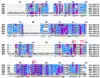 The red molecules are identical residues with Morn1, the Yellow are conserved molecules within a MORN repeat and the blue and gray molecules are those with little to no similarity.