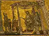 ![]() | Joseph Given Command over Egypt | It differs from the preceding scenes by a richer palette of colours, though this could be due to a different mosaicist, whilst its lively composition in almost pathetic tones may attribute them to the Master of the Maddalena (Pesenti, 1978–1979). |