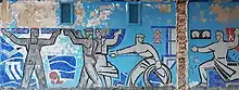 The decorative design of the building is completed by the sgraffito "Sports on the Dnieper" on the wall of the staircase, which leads to the open terrace of the restaurant. Images of athletes and girls with oars evoke distant associations with the art of the 1930s. At the same time, they are deprived of ideological connotations.[7]