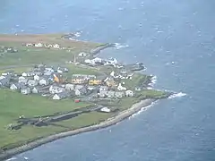 Mossbank is a village in the north east of the Mainland of Shetland, Scotland. Originally served by an inter island ferry steamer from Lerwick, this ceased when the Yell Sound ferry commenced from the small port of Toft, approximately 1 mile further north.[1] The village was profoundly changed in the early 1980s when construction began on the nearby Sullom Voe oil terminal. Large amounts of temporary accommodation were erected to house the construction workforce, with the population expanding from 130 in the early 1970s to about a thousand a decade later. The number of residents staying in Mossbank is forever changing, making it hard to record a village population.[1]