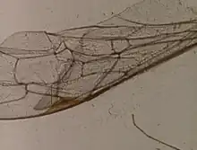 Mothlight is a silent "collage film" that incorporates "real world elements."[1] Brakhage produced the film without the use of a camera,[2] using what he then described as "a whole new film technique."[3] Brakhage collected moth wings, flower petals, and blades of grass, and pressed them between two strips of 16mm splicing tape.[4] The resulting assemblage was then contact-printed at a lab to allow projection in a cinema. The objects chosen were required to be thin and translucent, to permit the passage of light.[3] Brakhage reused the technique to produce his later film, The Garden of Earthly Delights (1981).[1] Mothlight has been described as boasting a "three-part musical structure."[1]
