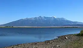 Blanca Peak (Navajo: Sis Naajinį́) is the fourth highest summit of the Rocky Mountains of North America and the U.S. state of Colorado. The ultra-prominent 14,351-foot (4,374 m) peak is the highest summit of the Sierra Blanca Massif, the Sangre de Cristo Range, and the Sangre de Cristo Mountains. The fourteener is located 9.6 miles (15.5 km) north by east (bearing 9°) of the Town of Blanca, on the drainage divide separating Rio Grande National Forest and Alamosa County from the Sangre de Cristo Land Grant and Costilla County. The summit is the highest point of both counties and the entire drainage basin of the Rio Grande. Below the steep North Face of Blanca Peak two live Glaciers once developed, until extinction sometime after 1903. North & South Blanca Glaciers were located at 37° 35N.,longitude 105° 28W. Blanca Peak is higher than any point in the United States east of its longitude.[lower-alpha 2][1][2]