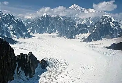 Mount Kudlich is an 11,301 ft (3,440 m) mountain summit located in the Alaska Range, in Denali National Park and Preserve, in Alaska, United States. Mount Kudlich is also referred to as Peak 11,300.[4] It is situated 4,000 feet above the confluence of the West and Northwest Forks of Ruth Glacier, on the west side of the Don Sheldon Amphitheater, 6.15 mi (10 km) southeast of Denali, 2.5 mi (4 km) north of Mount Huntington, and 3 mi (5 km) west-southwest of Mount Dan Beard. The mountain was possibly named by explorer Belmore Browne for Herman C. Kudlich (1861-1946), City Magistrate of New York and member of the American Museum of Natural History. Belmore Browne participated in Frederick Cook's 1906 expedition which claimed the first ascent of Mount McKinley, but was later disproved.
