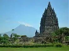 Mount Merapi viewed from 9th-century Prambanan Hindu temple, built during Mataram Kingdom era