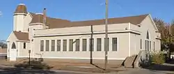The Mount Sinai Temple was built as a one-and-one-half story, frame, clapboard- and shingle-sided, Queen Anne-style building; its 1922 addition designed by William L. Steele was in Prairie School style.[4]