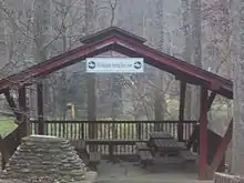 Located near the spring are a shelter, picnic table, and stone fireplace. This shelter is being used as a rest stop along the Mountain Parkway Byway.[10]