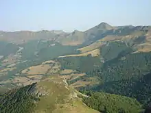 The Mounts of Cantal (or Volcanoes of Cantal; French: Monts du Cantal [mɔ̃ dy kɑ̃tal]) are a mountainous massif in the mid-west of the Massif Central, France, made up of the remnants of the largest stratovolcano of Europe, which was formed from 13 million years ago and last erupted approximately 2 million years ago. However, the main part of the volcanic activity was concentrated between 8.5 and 7 million years ago. Thereafter, the original volcano was largely eroded, massive landslides occurred, and it was further eroded by glaciers and water.[1]