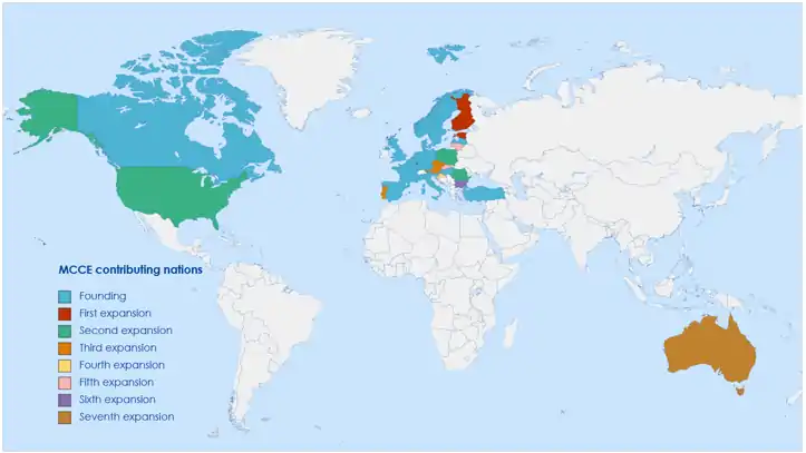 The MCCE was officially established on 1 July 2007 as the merger of the earlier European Airlift Centre and the Sealift Coordination Centre.[4] On this date, the initial 15 signatory countries became official members. The MCCE has since been through several cycles of expansion.[5]