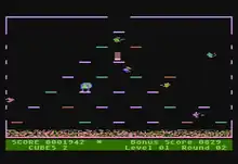 Mr. Cool is an action game designed by Peter Oliphant and published in 1983 by Sierra On-Line for the Atari 8-bit and Commodore 64 home computers.[1] The ports for the IBM PC (as a self-booting disk) and Apple II were written by John Redekopp and released the same year.[1] The game is heavily inspired by the 1982 arcade video game Q*bert.