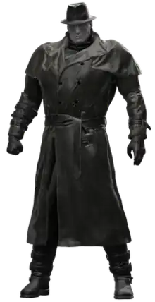 In the original Resident Evil 2, Mr. X wore only a trench coat, while in the remake, he also wears a fedora hat.[4] He was dropped into Raccoon City by Umbrella Corporation along with five other T-103 Tyrants during the outbreak of the T-virus, a highly contagious zombifying virus created as a bioweapon. While the others were commanded to engage in a cover-up of the situation, T-00 was given two unique missions - to eliminate any survivors in the Raccoon City Police Station, and track down a sample of the G-virus, a mutagenic pathogen enabling immense growth and power, by any means necessary. Leon and Claire soon discover he is immune to harm from any normal weapon.[8] While being temporarily incapacitated by the impact of a moving van and explosives detonated by series antivillain Ada Wong, he later recovers before being seemingly killed by William Birkin, a mutated scientist who formerly worked for Umbrella. In Claire's scenario, he is not seen further, while in Leon's scenario, Mr. X is shown to have regenerated again, pursuing Leon into NEST, a secret Umbrella Corporation research facility. When the self-destruct sequence for NEST is triggered, he mutates into a Super Tyrant to attempt to kill Leon once and for all. Ada gives Leon a rocket launcher, allowing him to permanently kill Mr. X.[5]