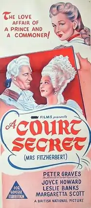 Mrs. Fitzherbert, also known as Princess Fitz and A Court Secret, is a 1947 black and white British historical drama film directed by Montgomery Tully and starring Peter Graves, Joyce Howard and Leslie Banks.[1] It depicts the relationship between George IV and Maria Fitzherbert.[2] It is an adaptation of the 1945 novel Princess Fitz by Winifred Carter
