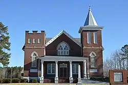 Mount Sinai Baptist Church, also known as Mount Sinai Baptist Church and Cemetery, is a historic African-American Baptist church and cemetery located at 6100 Holy Neck Road in Suffolk, Virginia. It was built in 1921 by members of the church who were brick masons in the Victorian Gothic Revival style. It features a two towered façade, pointed Gothic-arched windows of stained glass imported from Germany, and prominent Classical porch. The church replaced a frame church erected in 1881. Associated with the church is a cemetery established about 1920.[3]
