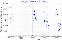 A visual band light curve for BL Cancri, plotted from data presented by Tabur et al. (2009)[1]
