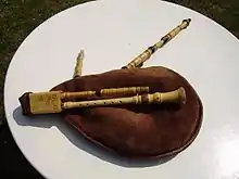 The muchosa has a chanter with a conical bore and double reed, pitched to B-flat.[1] It has two single-reed drones.[1] The treble drone is placed in a common stock with the chanter, and the bass drone is placed further back in its own stock, a feature common to other the musette style of bagpipe in central and northern France.[1]