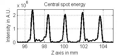 An incident laser beam is deflected by grooved diffraction pattern into axial diffraction orders along its optical axis. The foci appear around the far field position. With an additional focusing lens, foci from multifocal lens will appear at certain distances from the focal point of the lens.