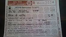 - ↑ "Coupons with bar codes for train travel". Hindustan Times. 3 October 2012. Archived from the original on 3 October 2012. Retrieved 16 July 2013.