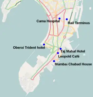 Locations of the 2008 Mumbai attacks