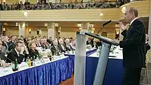 The 2007 Munich speech was given by Russian president Vladimir Putin in Germany on 10 February 2007 at the Munich Security Conference. The speech expressed significant points of future politics of Russia driven by Putin.[1][2][3][4]