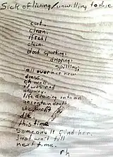 - The macabre poem found inscribed upon a desk which had been in the Riverside Community College on the night Bates was murdered