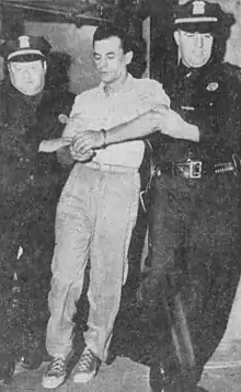 On August 22, 1956,[10] six weeks after the kidnapping and after the FBI had analyzed over 2 million public records in an attempt to find a handwriting match,[6][11] a federal probation officer in Brooklyn, New York, found a document in his files with handwriting that matched the unique writing style of the ransom notes' author. The defendant in that case was then-31-year-old Angelo LaMarca, who had been convicted of bootlegging[6] in Suffolk and had just completed his term of probation. After FBI handwriting experts concluded that LaMarca had written the ransom notes, Nassau County police planned the arrest in a way that was intended to avoid harm to Peter Weinberger if he were still alive. The next day, on August 23, police swarmed the homes of LaMarca and all of his close relatives.[9] Police arrested LaMarca at his own house as he returned from dropping off his own two children at his parents' house.[9]