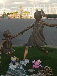 On October 18, 2022, a bronze statue was inaugurated in homage to Anna and Olivia, located in the La Gesta of July 25 children's park, next to the Plaza de España in the city of Santa Cruz de Tenerife. The work of the Basque-born sculptor based in Tenerife, Julio Nieto, the work, in the words of the author: ―«is a soft design that reminds us of Anna and Olivia, their happy life, that tender look between them, of complicity and trust»―.[23] The sculpture was donated by the Fundación Diario de Avisos. During the inauguration, the mother of the girls Beatriz Zimmermann and different political authorities were present.[24]