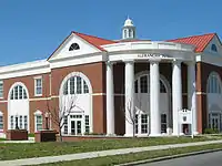 Murray State Normal School opened on September 24, 1923.[4] In 1924, the first building on Murray State's campus, the Administrative Building, was constructed.[5] Before this, all MSU classes had been held on the first floor of what is now Murray Middle School, located on Main Street.[6] Designed by Joseph & Joseph in the Collegiate Gothic style[7] the Administrative Building, later known as Wrather Hall, housed classrooms, a dining hall, offices, and a chapel. The building was added to the National Register of Historic Places in 1975, and renovated soon after, finally being renamed to Wrather West Kentucky Museum, named for Murray State executive vice-president Marvin O. Wrather.[5][7] All students lived at home or boarded with local families until the first dormitory, Wells Hall, was constructed in 1925. Wilson Hall was also completed under Carr's presidency, with other structures in progress.