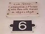 6 Rue Cortot plaque, replicating Satie's calligraphic handwriting.