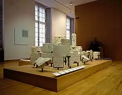Finally, the third source is a set of long-term loans from museums such as le Centre Pompidou, the Musée d'Orsay, the Musée du Louvre, and the Musée national des Arts d'Afrique et d'Océanie. The museum's collection was also enriched by loans from the Consistory of Paris, the Jewish Museum in Prague and donations from the Fondation du Judaïsme français.[3] The museum also acquired a large photography collection. The collection has over 1500 photographs, mainly of Jewish communities from the past and present, of historical events, and of Jewish architectural heritage.