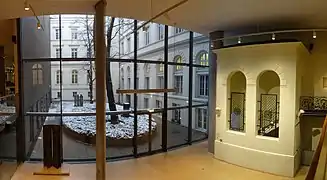• Art Nouveau: an ensemble of Art Nouveau furniture and exhibits, the "Paris Room", much of it acquired at the world's fair in Paris in 1900.[6] Including two greater-than-lifesized white sculptures from 1907, faience sculptures of girls by Richard Luksch, and the Swan Carpet (1897) by Otto Eckmann.