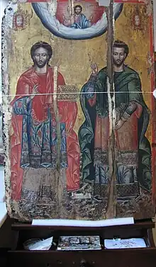 - ↑ Karakatsanis, Athanasios A. (1997). Treasures of Mount Athos. Thessaloniki: Ministry of Culture; Museum of Byzantine Culture. ISBN 960-86009-0-1. OCLC 38491467.
