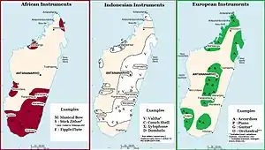 Madagascar: Early 20th century distribution of musical instruments with African, Indonesian or European origins