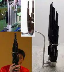 Popular throughout China, the Sheng is noted for its prevalence in traditional music of the Quantao music of the Northern Hebei province.[23][24] A polyphonic instrument consisting of 17 individual pipes, each of which house a single ‘free reed[23]’.The musician blows into the mouthpiece of the sheng and covers the relevant finger holes to create sound, the pipesets based on the chromatic scale allow for huge pitch range and melodic diversity.[23][24] Instruments similar to the sheng have been dated back to the Han dynasty of 206 BC - 220AD.[24]