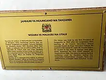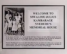 Mwalimu Nyerere Memorial House (Swahili: Nyumba ya Kumbukumbu ya Mwalimu Nyerere) is a museum dedicated to the Tanzanian founding father Julius Nyerere. It is located in Mzimuni ward of Kinondoni District in the Dar es Salaam Region of Tanzania. Specifically, on Makumbusho street, Plot No. 62, House No. 2, Mzimuni ward.[1]