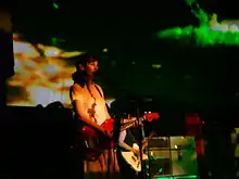 One of the most recognisable aspects of My Bloody Valentine's music is Shields' guitar sound, which "use[s] texture more than technique to create vivid soundscapes."[90] During the late 1980s, Shields began customising the tremolo systems for his Fender Jaguars and Jazzmasters; extending the tremolo arm and loosening it considerably, to allow him to manipulate the arm while strumming chords,[90] which resulted in excessive pitch bending. Shields used a number of alternate and open tunings[14] that together with his tremolo manipulation achieved "a strange warping effect that makes the music wander in and out of focus", according to Rolling Stone.[91] Shields' most notable effect is reverse digital reverb, sourced from an Alesis Midiverb II or Yamaha SPX90 effects unit. Together with the tremolo manipulation and distortion, he created a technique known as "glide guitar".[92] Shields effects rig, which is composed largely of distortion, graphic equalizers and tone controls,[93] consists of at least 30 effects pedals[59] and is connected to a large number of amplifiers, which are often set to maximum volume to increase sustain. During live performances, in the closing song "You Made Me Realise", My Bloody Valentine perform an interlude of noise, which can last for half an hour and often reaches 130 dB.[94] Shields later remarked "it was so loud it was like sensory deprivation. We just liked the fact that we could see a change in the audience at a certain point."[36]