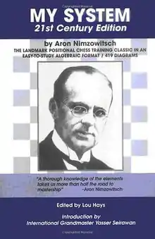 My System (German: Mein System) is a book on chess theory written by Aron Nimzowitsch. Originally over a series of five brochures from 1925 to 1927, the book—one of the early works on hypermodernism—introduced many new concepts to followers of the modern school of thought. It is generally considered to be one of the most important books in the history of chess.[1]
