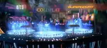 Coldplay and BTS performed "My Universe" for the first time together at the 2021 American Music Awards on 21 November at the Microsoft Theater in Los Angeles.[75] On 2 December, Martin joined BTS to perform the song at the latter's Permission to Dance on Stage concert at SoFi Stadium in Inglewood, California.[76]
