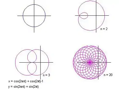 Let us take u, the unit circle centered at the origin and α, the astroid. The n-curve of u is given by,