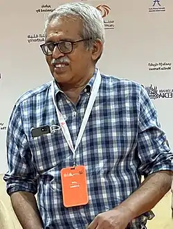 He began his career in writing with the publication of Poovum Puzhayum (1988), a collection of short stories.[11] He received an Edasseri Award for this work in the same year.[12] Since then he has published a number of works[13] and received many prestigious awards including Kendra Sahitya Akademi Award for Children's Literature[14] the Kerala Sahitya Academy Award[15] and Kerala Balasahitya Institute Award.[16] He was editor of the Dubai based TAKE:1 magazine in 2016.
