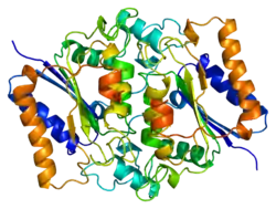 NAD(P)H dehydrogenase, quinone 2, also known as QR2, is a protein that in humans is encoded by the NQO2 gene. It is a phase II detoxification enzyme which can carry out two or four electron reductions of quinones. Its mechanism of reduction is through a ping-pong mechanism involving its FAD cofactor. Initially in a reductive phase NQO2 binds to reduced dihydronicotinamide riboside (NRH) electron donor, and mediates a hydride transfer from NRH to FAD. Then, in an oxidative phase, NQO2 binds to its quinone substrate and reduces the quinone to a dihydroquinone. Besides the two catalytic FAD, NQO2 also has two zinc ions. It is not clear whether the metal has a catalytic role. NQO2 is a paralog of NQO1.