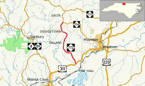 North Carolina Highway 772 (NC 772) is a primary state highway in the U.S. state of North Carolina. NC 772 is a two-lane rural highway that traverses 10.3 miles (16.6 km) from U.S. Route 311 (US 311) north of Pine Hall to NC 704 in Prestonville.