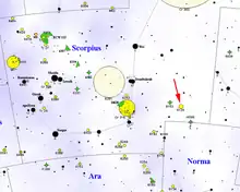 ![]() NGC 6124 (taken from Stellarium) Credit: Roberto Mura | |