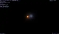 NN Serpentis (abbreviated NN Ser) is an eclipsing post-common envelope binary system approximately 1670 light-years away.[3] The system comprises an eclipsing white dwarf and red dwarf. The two stars orbit each other every 0.13 days.[3]